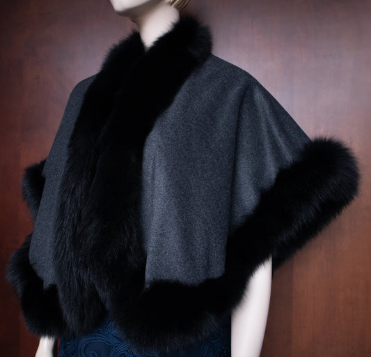 Black Fox Trim Cocktail Wrapped Grey Cape