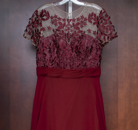 Red Floral Waist Cut Long Dress